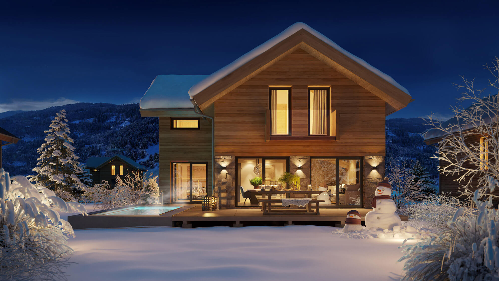 Ontdek luxe wellness chalets in Murau, Steiermark. CO2-neutraal, privé sauna, panoramisch uitzicht en perfect 2-seizoenen vakantiegebied.