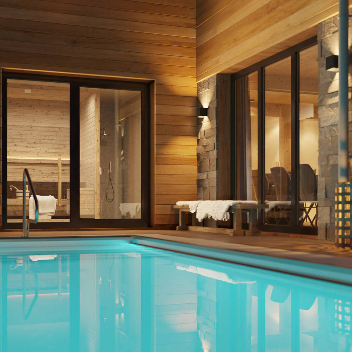 Tot de centrale voorzieningen behoort een stijlvolle receptieruimte voor het ontvangen van gasten. Elke chalet wordt gebouwd over twee verdiepingen en is geschakeld of vrijstaand uitgevoerd. Daarnaast beschikken de woningen standaard over een eigen parkeerplaats, een privé wellness met Finse sauna en regendouche, en meerdere badkamers. Bovendien is er een ruime keuze aan meerwerkopties en upgrades, zodat u de woning volledig kunt afstemmen op uw persoonlijke smaak en wensen. Hiervoor is een aparte brochure beschikbaar. De moderne chalets voldoen ruimschoots aan de verwachtingen van de hedendaagse vakantieganger en spreken, dankzij de luxe inrichting en de unieke ligging, een brede doelgroep aan.