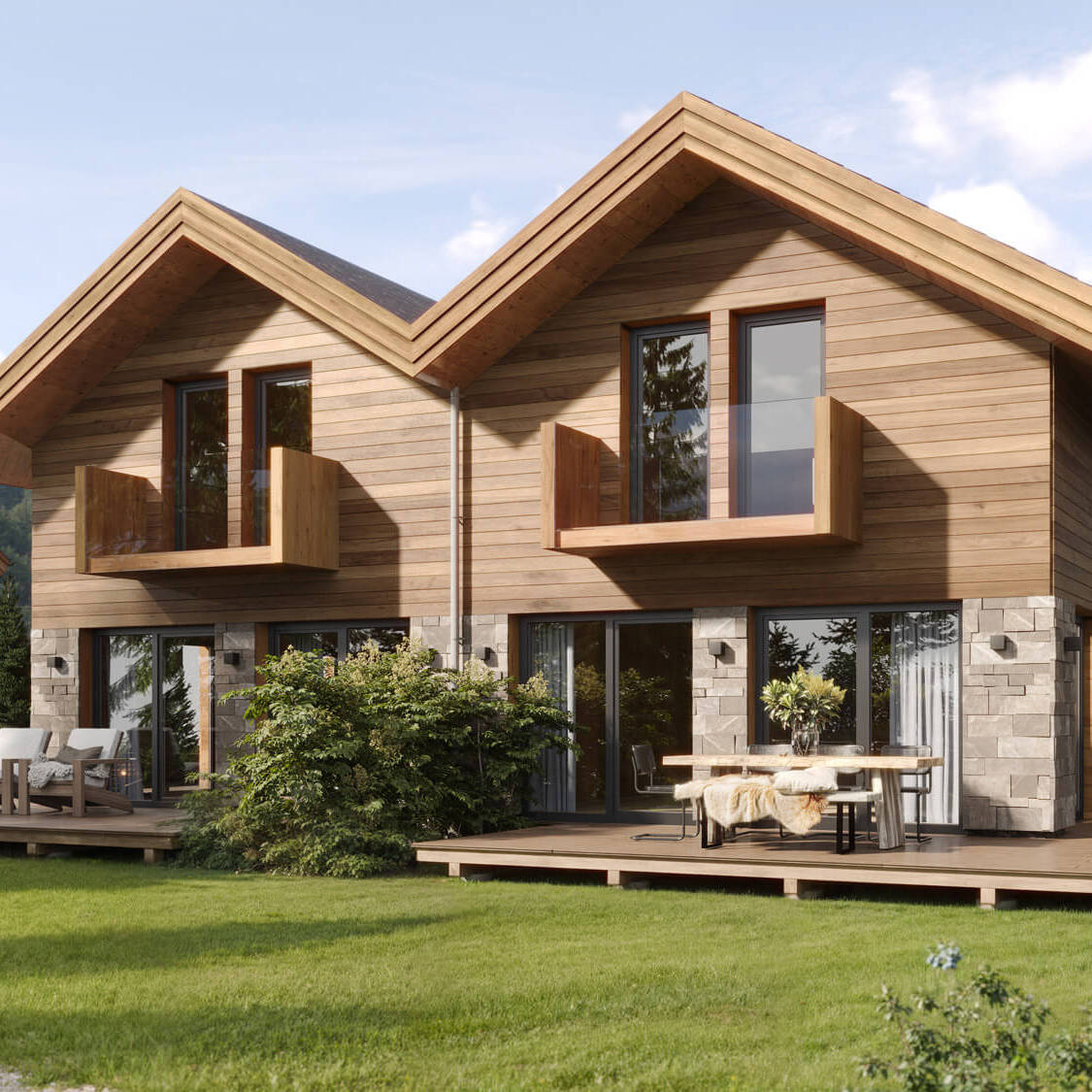 - Vrijstaande en geschakelde design chalets gelegen in een zonnig dal