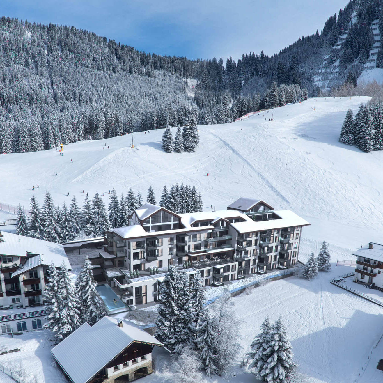 In de tweede fase wordt nu de nieuw te bouwen Residence ontwikkeld. De Residence komt op de oude locatie van de befaamde Berwanger Hof. De luxe appartementen variërend van 2- tot 10 personen hebben allen hun eigen unieke kenmerken. Alle appartementen zijn voorzien van een in-house wellness. Direct ski-in, ski-out en tot de centrale voorzieningen behoren o.a. een uitgebreide lounge met een bistrobar met eetgelegenheid, een uitgebreide fitness, panora­ma sauna een verwarmde infinitypool van ca. 18 meter lang met uitzicht op het sprookjesachtige dal en eigen parkeergelegenheid in de parkeergarage.
