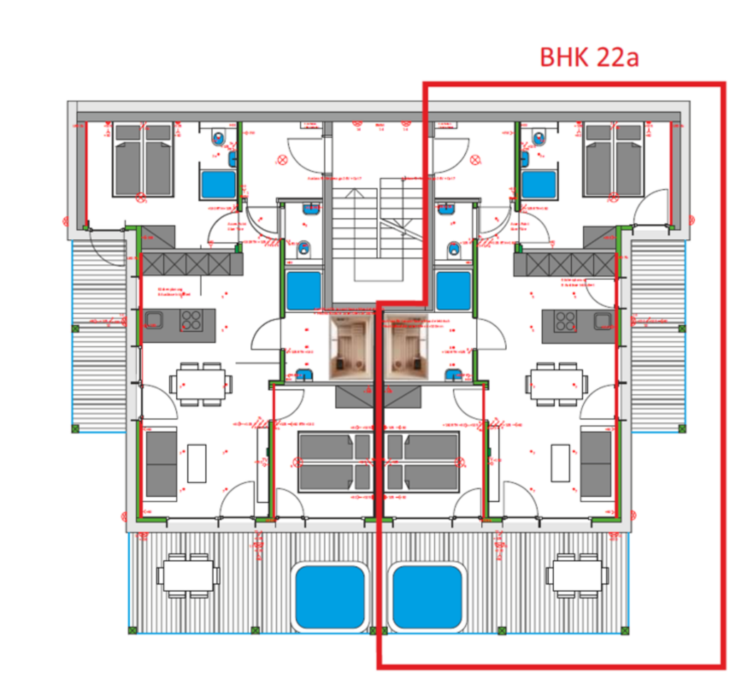 Het appartement is geschikt voor 4 personen luxe uitgevoerd met twee slaapkamers, twee badkamers en een separaat toilet en beschikt over privé wellness faciliteiten met een finse premium sauna en een verwarmd bad op het terras. Het appartement heeft een magnifiek uitzicht op het Dachstein massief en door de bijzondere architectuur en de façade met panoramaglas zal dit een groot publiek aanspreken. Geheel volgens Oostenrijkse traditie worden de appartementen gebouwd met eersteklas materialen.